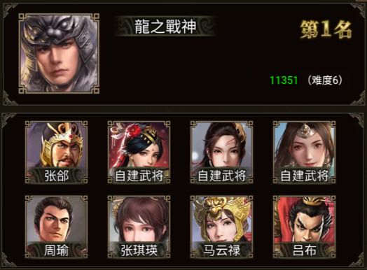 张郃、周瑜、张琪瑛、马云禄、吕布、孙尚香、陈到和三位自建武将。