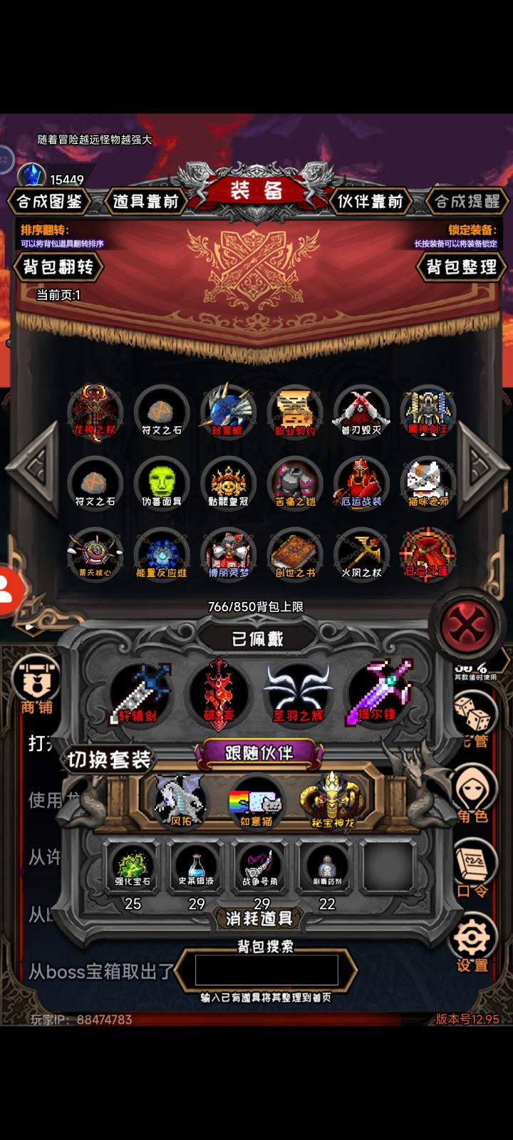 玩法进阶装备:龙神之杖(可解锁龙娘、风佑两个专属宠物),五色龙、冰凤凰小冰等