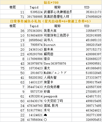 即日起到5月3日24:00,制作人们快来分享一下生活中遇到的惊喜瞬间吧,记得附上正确的UID!!!! ᐕ)⁾毛豆豆将会在后续摸2位制作人送出钻石*700,并向20位制作人送上日常事务减负小礼包(星光自动劵*6+快速工作劵*5)作为分享奖励~!
