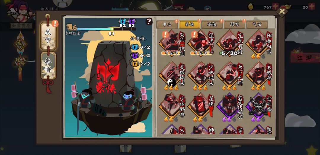 所以7橙卡,2锁,只要你打开商店,高级宝箱,甚至洞穴,只要看见的橙卡,我得到少林棍法的概率就是4/7,也就是57%,而一开始就锁了2卡,进去随缘的概率是1/5,也就是20%,相差许多。