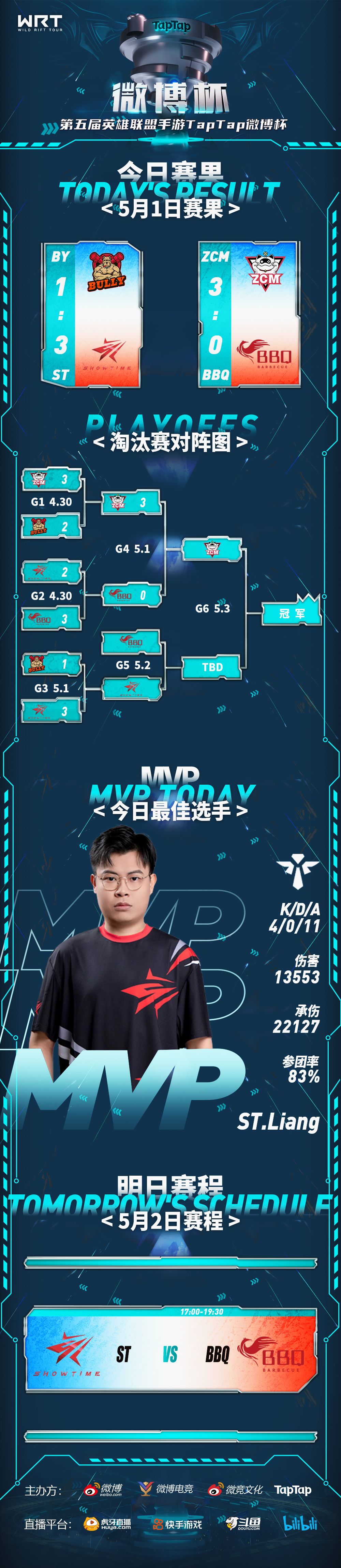 【淘汰赛败者组半决赛与胜者组决赛赛果&明日赛程预告】ST.Liang获今日MVP