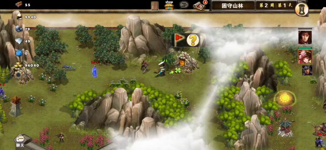 打法思路:到了第二周小乔还是继续把上方刺客解决掉然后把资源占领了接着就往左边跑一样的打法占领资源清理刺客,周瑜每周一之前回到基地周一基地会刷新兵种优先选择神射手隔天给小乔运送过去,然后把地图外面的兵全部拿了。(不拿兵下一周他不会刷新新兵)