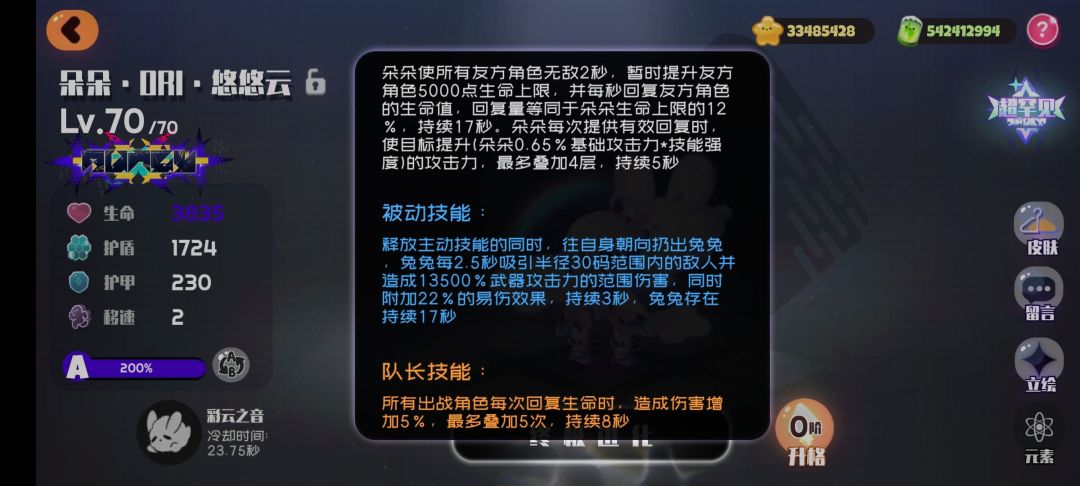 被动技能被动会根据人物朝向丢出一只无敌兔兔,吸引范围内敌人形成聚怪效果。