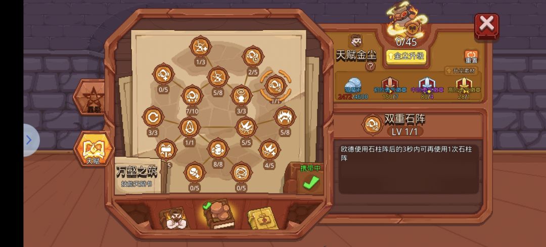 对单是你打的到怪怪打不到你,对多是一个钝角远程通用阵拍上去就是你把怪包围了(特别是坚持到传送水晶开启这一类的,就算火力在沃尔挺帝国那关不够也不会翻车是真的稳如老狗)。不点锤子触发之类的可能33级就大成型了,还是很推荐的。