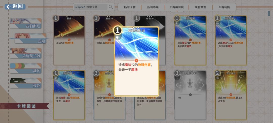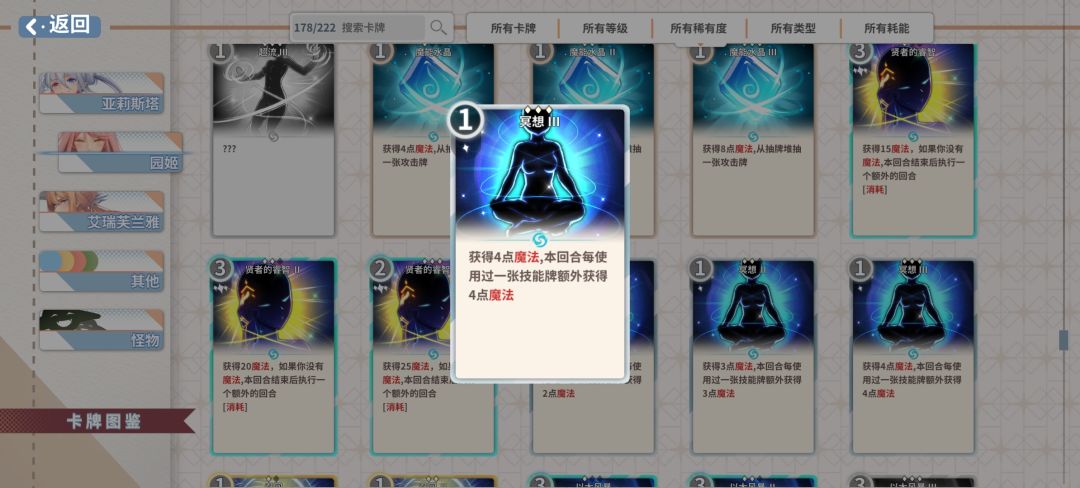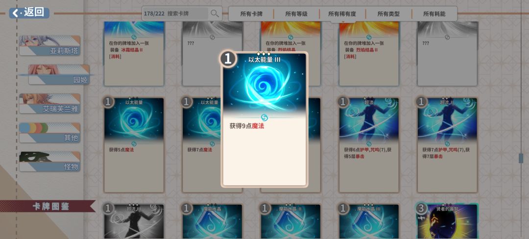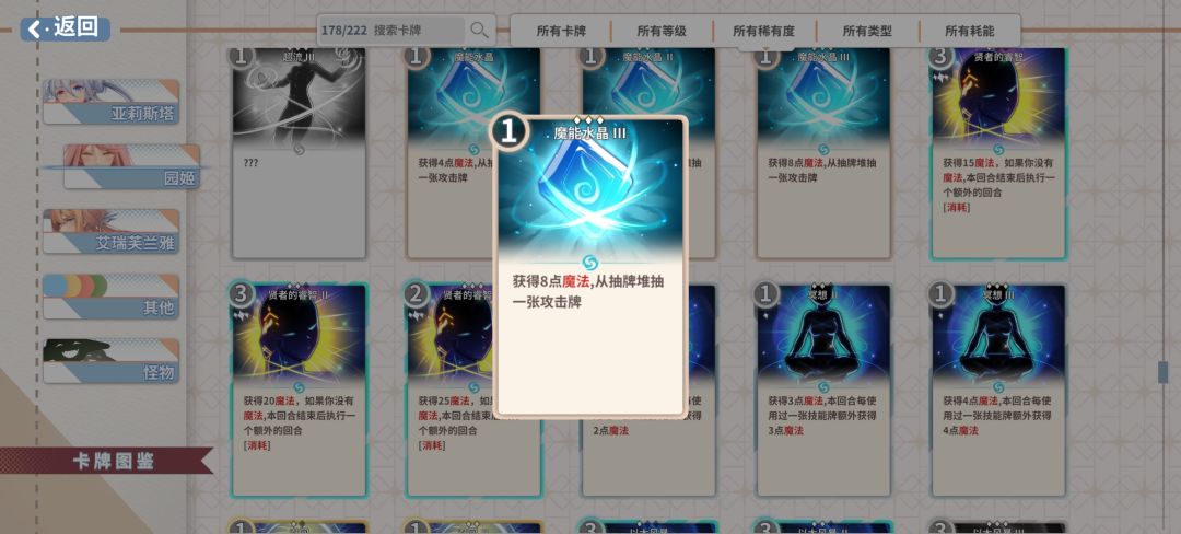贤者的卡组如果不是ssr卡核心的流派,难度还是比较高的。这一套的挂件相对容易获取,魔能风暴可以用sr的攻击卡用卡牌变形去roll。卡组大概7-9张,升级抽卡数堆到6张就够了,因为都还要用费,还是需要优先升级费用获取。