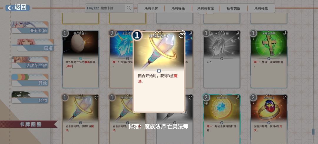 因堆魔法速度较慢,不能开局第一回合打高伤,秘银法杖费用低,所以可以放最多3张,加强续航。
