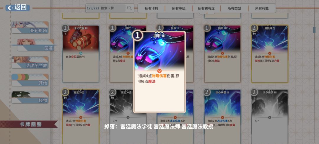初始卡组自带,因为击杀在第二第三回合,所以可以借助堆魔法的收益减少伤害。因为魔能风暴获取困难,前期不一定能获取到,所以是前期升级时优先升级的卡。