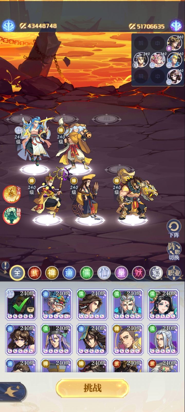 三藏先手加怒减攻击,确保能打到吕洞宾,戚继光直接秒百花,三藏怒气减攻击,怀素秒掉何仙姑。接着就随缘打吧。