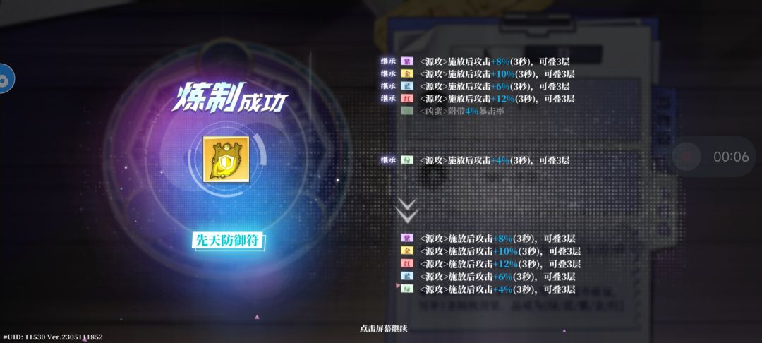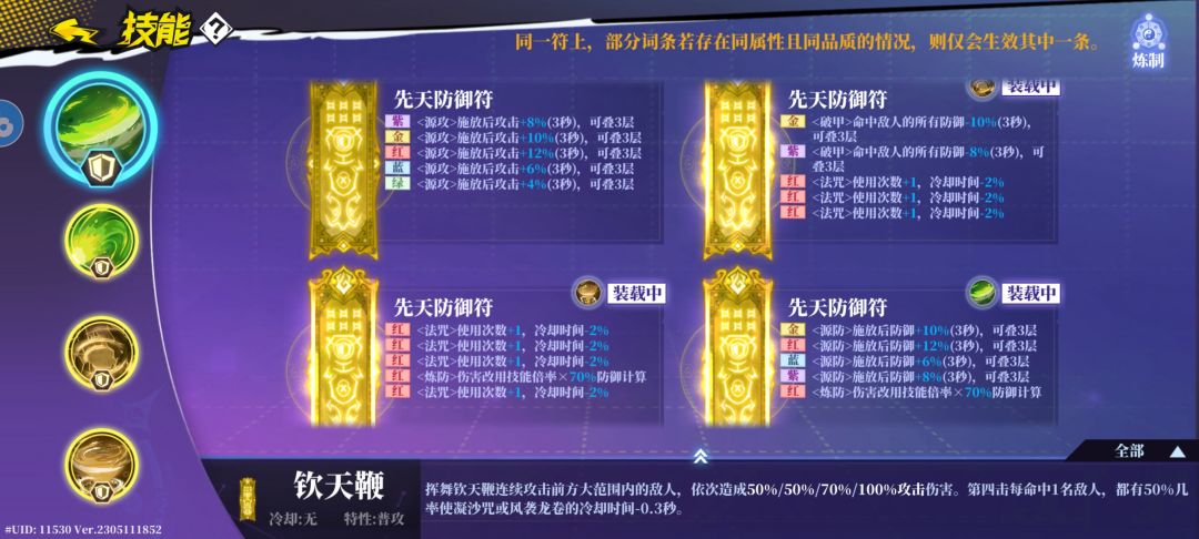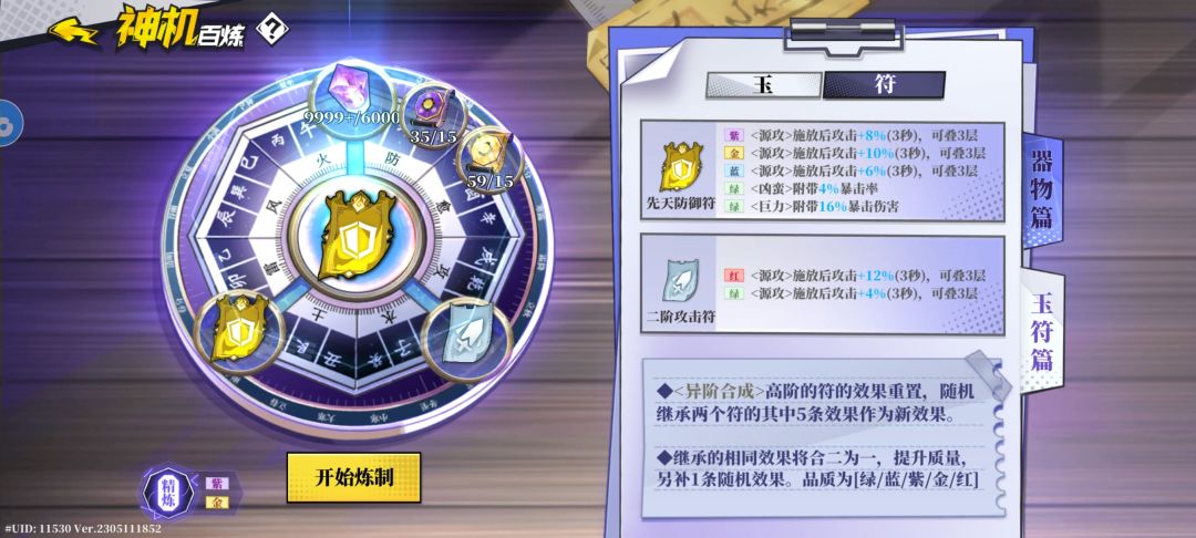 ②2色紫合成方法,有点难,需要一个2阶符,必须2个相同蓝色词条加一个一阶词条。3阶金2阶紫+3阶紫或2阶紫合。
