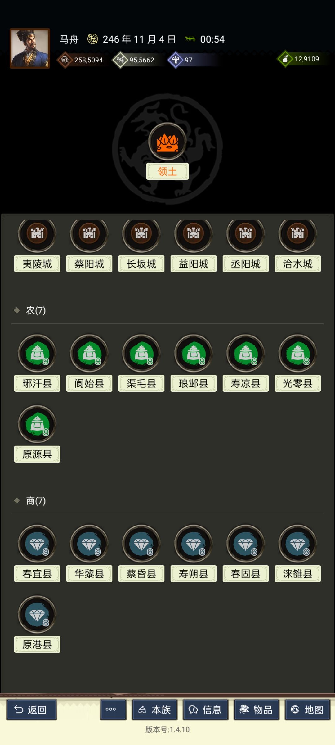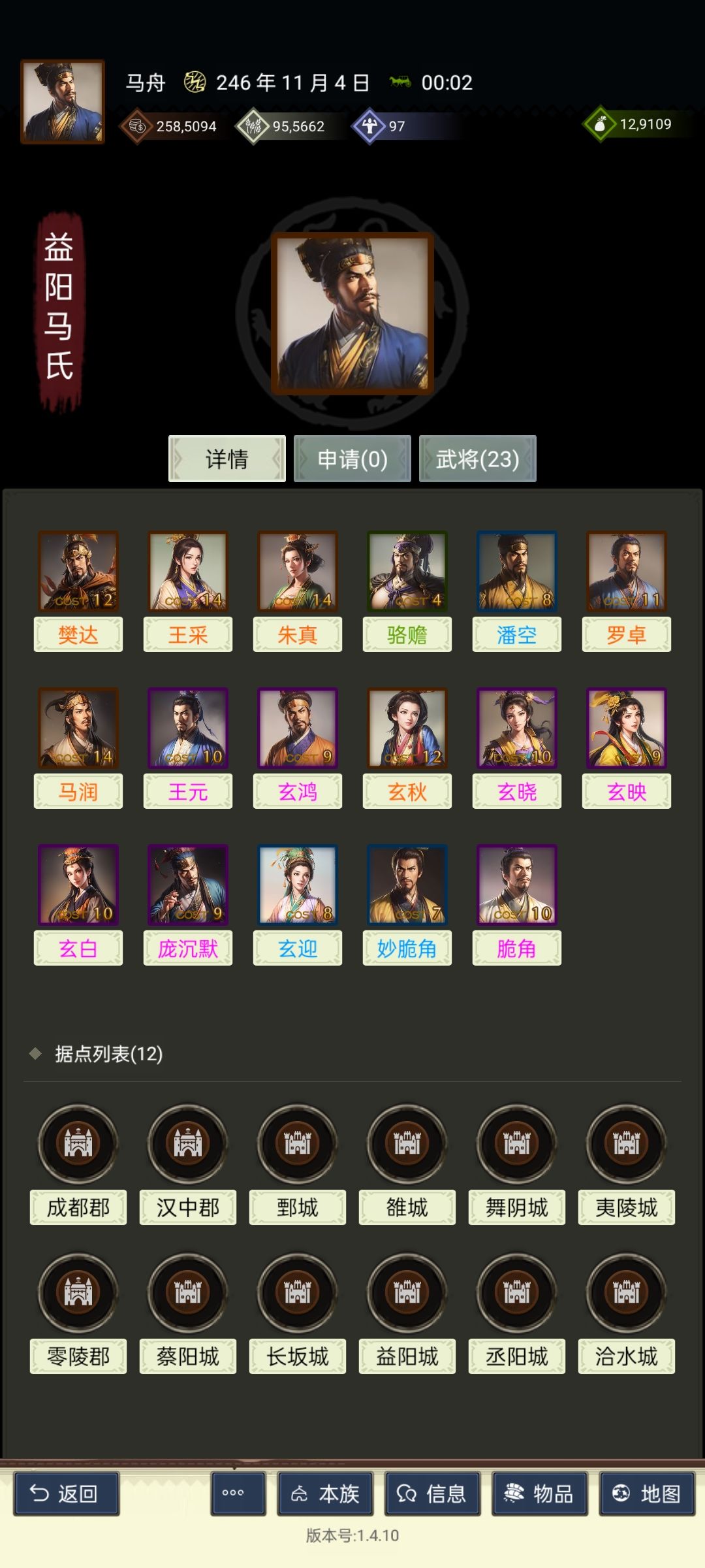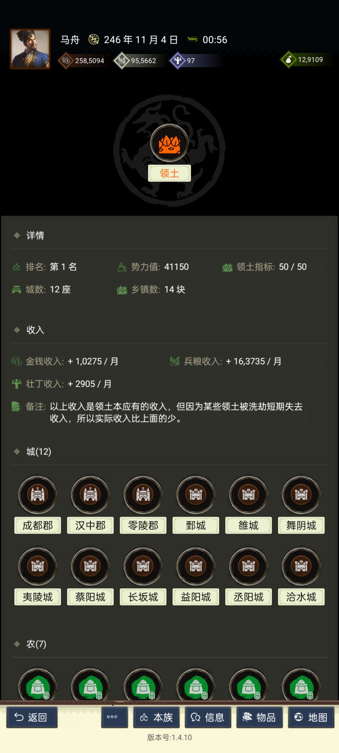 坐拥12城,地若干,势力值超4万。