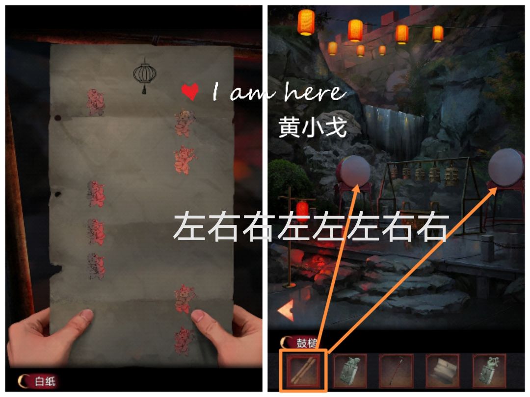 16.(商场外)点击红灯笼,拿出【白纸】,获得打鼓顺序:左右右左左左右右