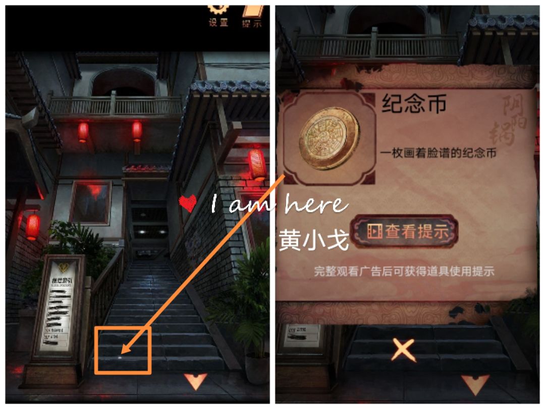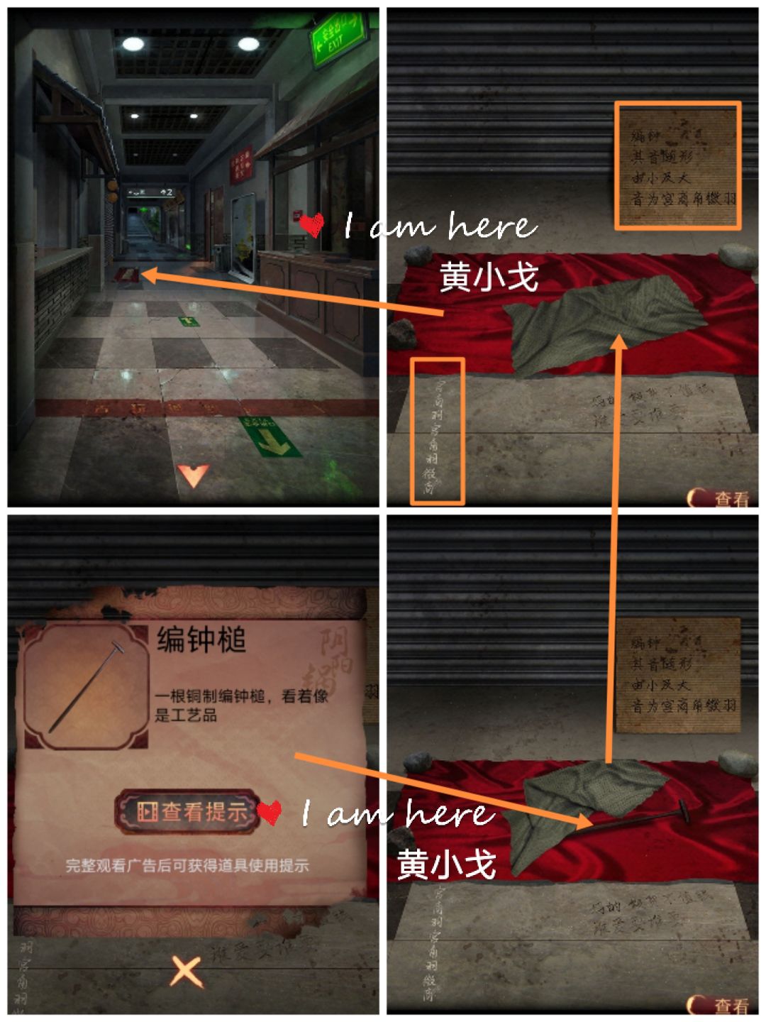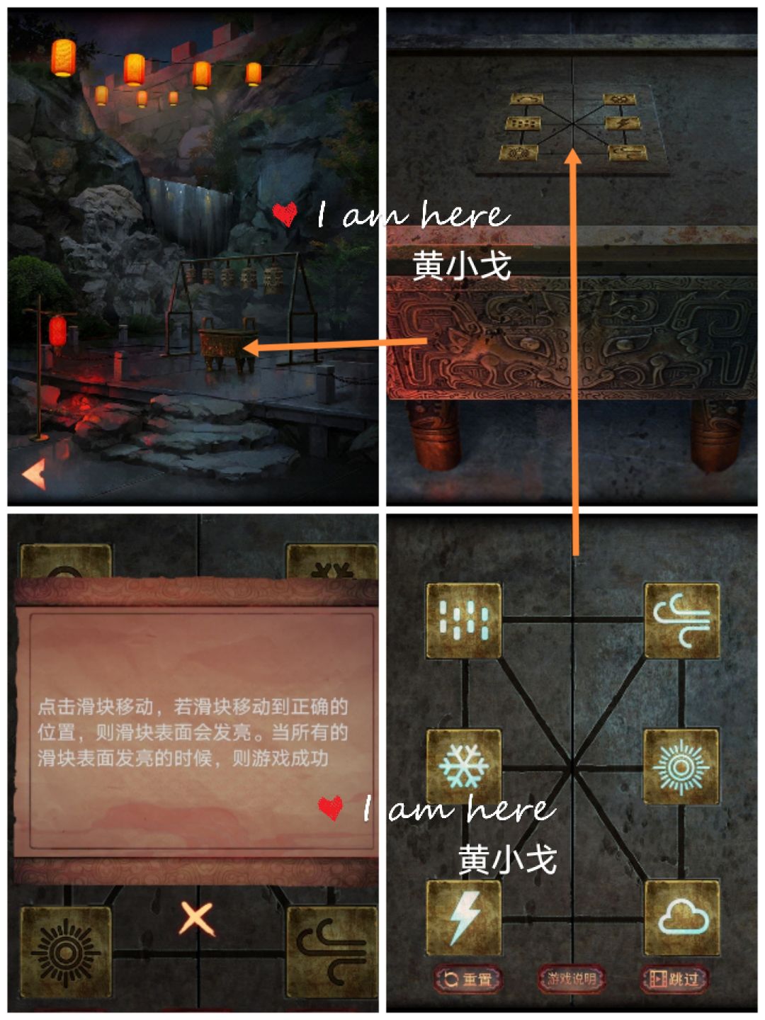 1.(商场外)点击青铜鼎上的机关,查看游戏说明,完成小游戏