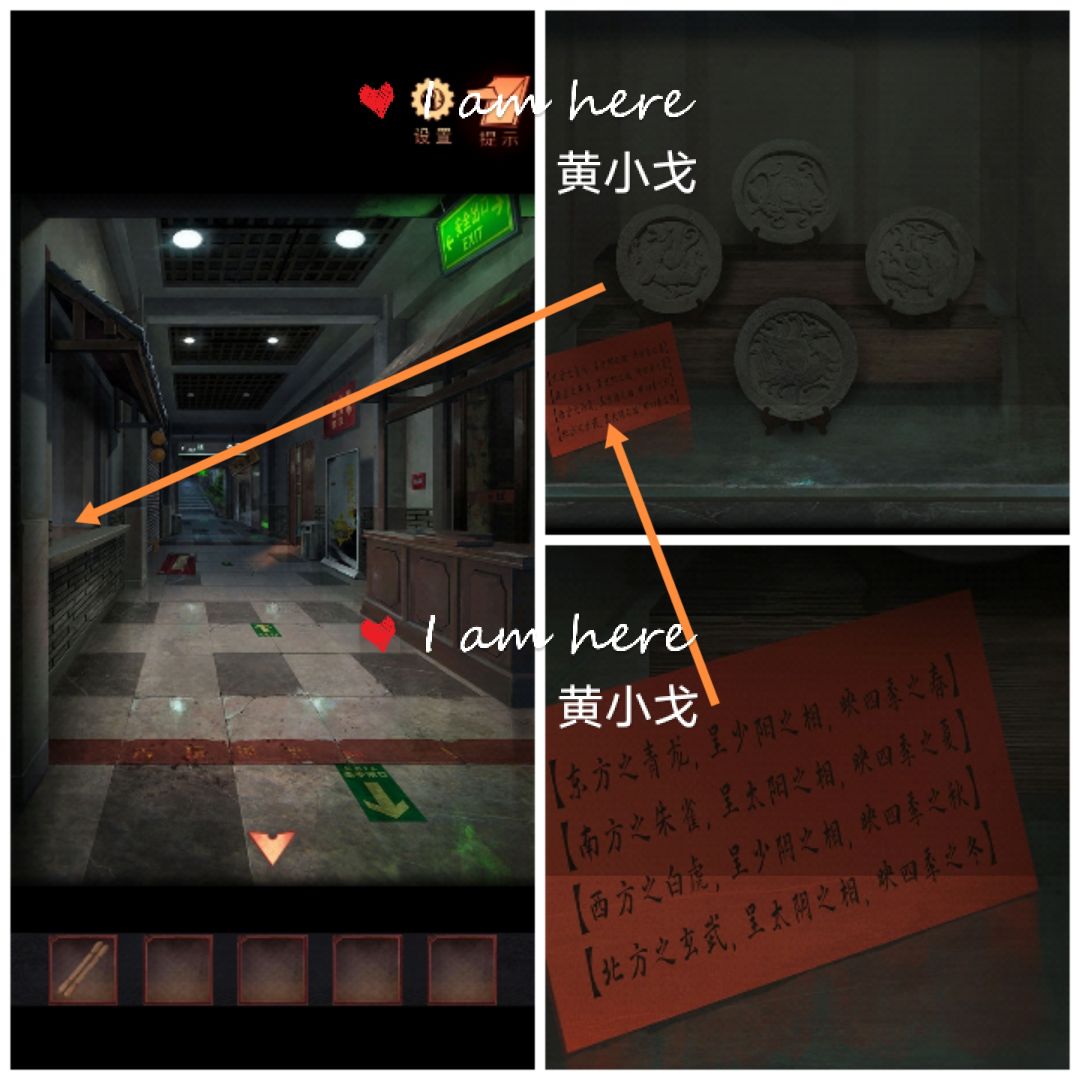 3.(商场一楼)点击左边的商铺,注意看瓦当上雕刻的四神兽的位置(左白虎、右青龙、上玄武、下朱雀),查看红色卡片上的字
