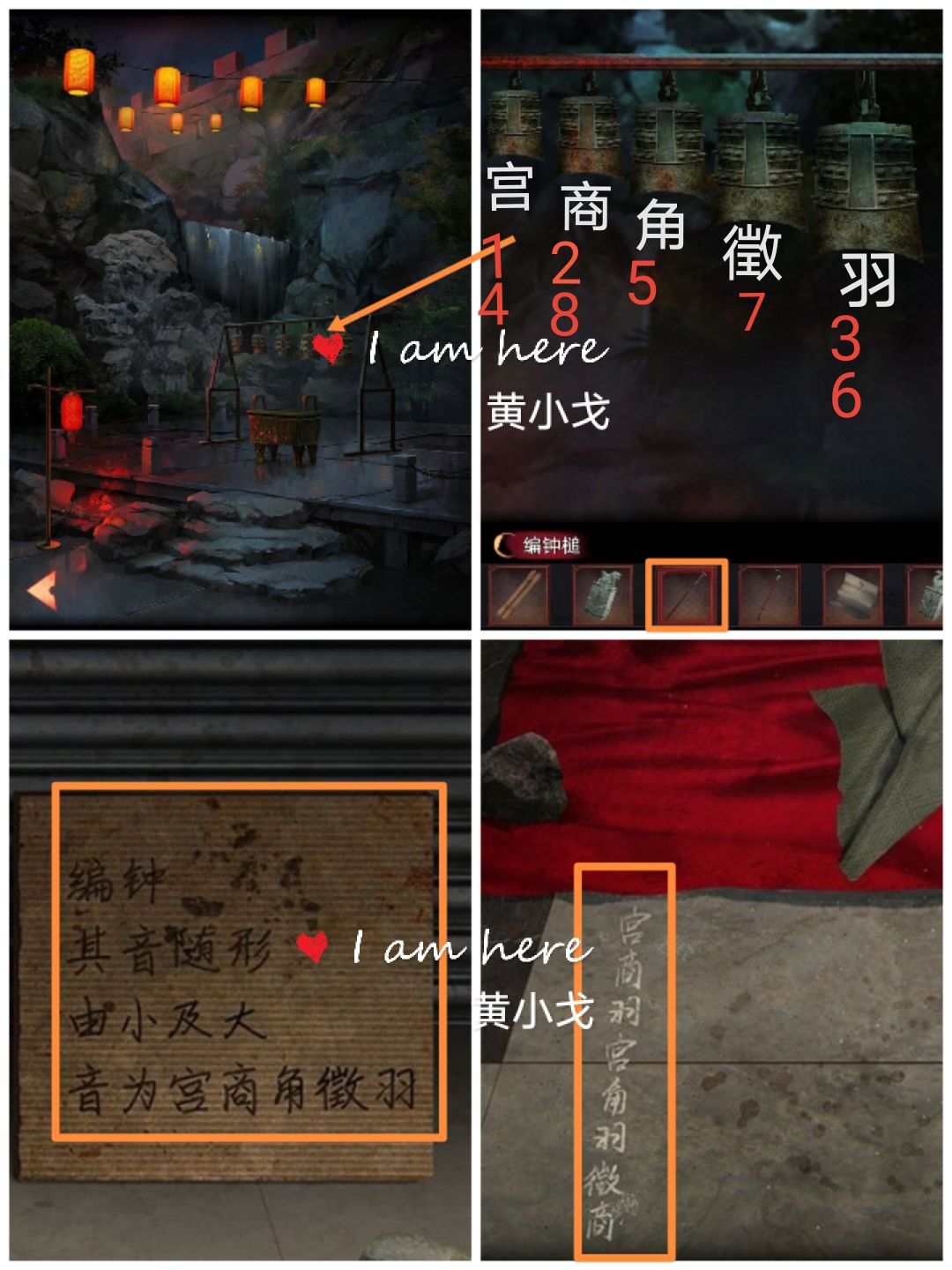17.点击编钟,根据假货摊上的线索,用【编钟槌】按宫商羽宫角羽徽商(12513542)的顺序敲编钟