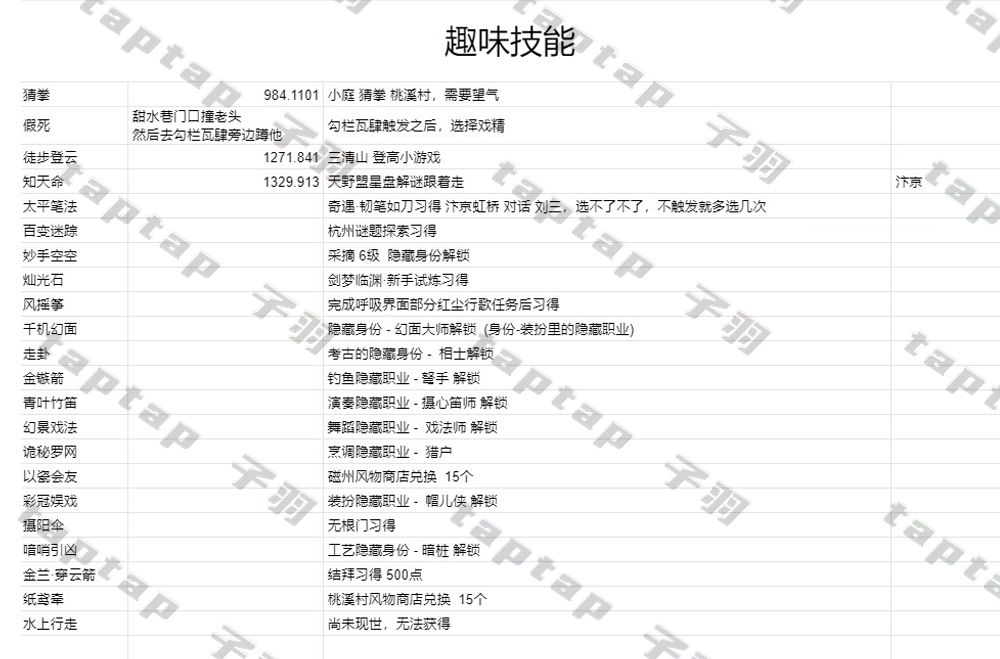 逆水寒手游江湖技能-趣味技能获取