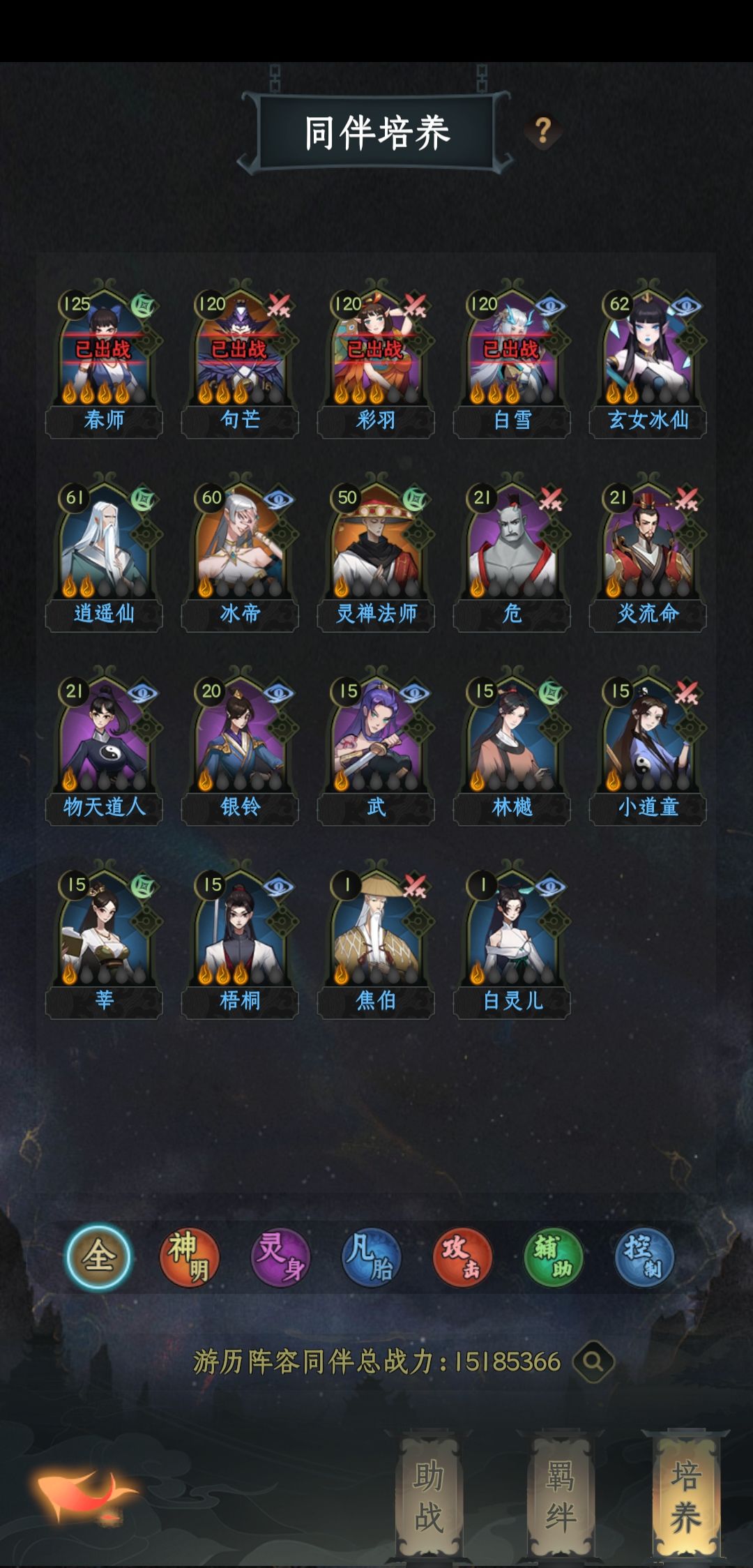 句芒:商店,同伴,999币子换一个,前期必备,三星才有用,所以同伴榜优先给句芒升到3星,用我提供的橙色灵魂获得途径,仙官8以上可以轻松获得3星句芒,平民建议主冰帝,鬼仙人