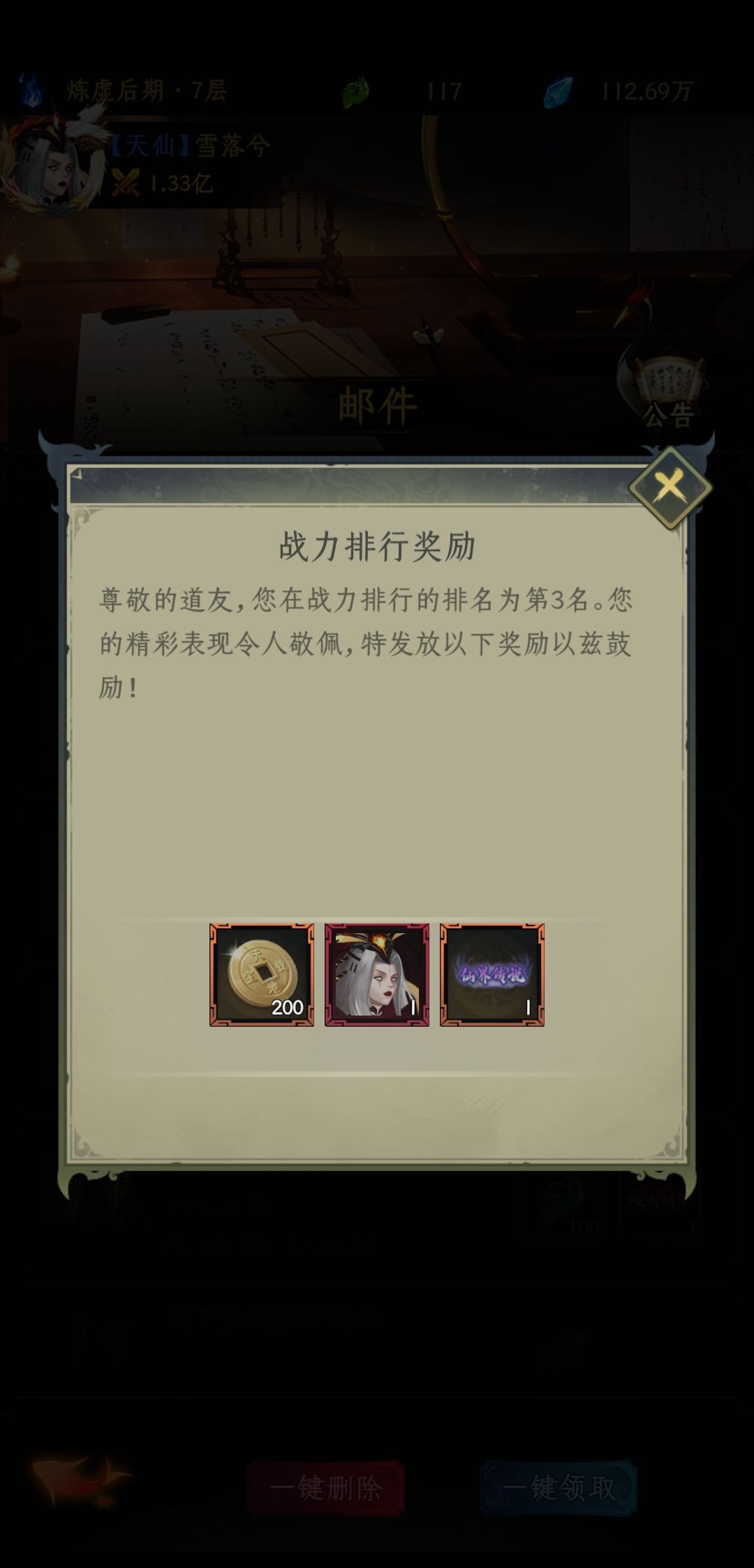 今天的攻略到此为止,新人有啥疑惑可以评论区留言,我可以回答,作为一个10天每天在线19个小时选手,我对这个游戏前期摸索应该还不错,我仙官8,我们区4个仙官10,我在这么多大佬情况下偷榜战力榜第三,对我们区的绵绵表达歉意!对不起绵绵。