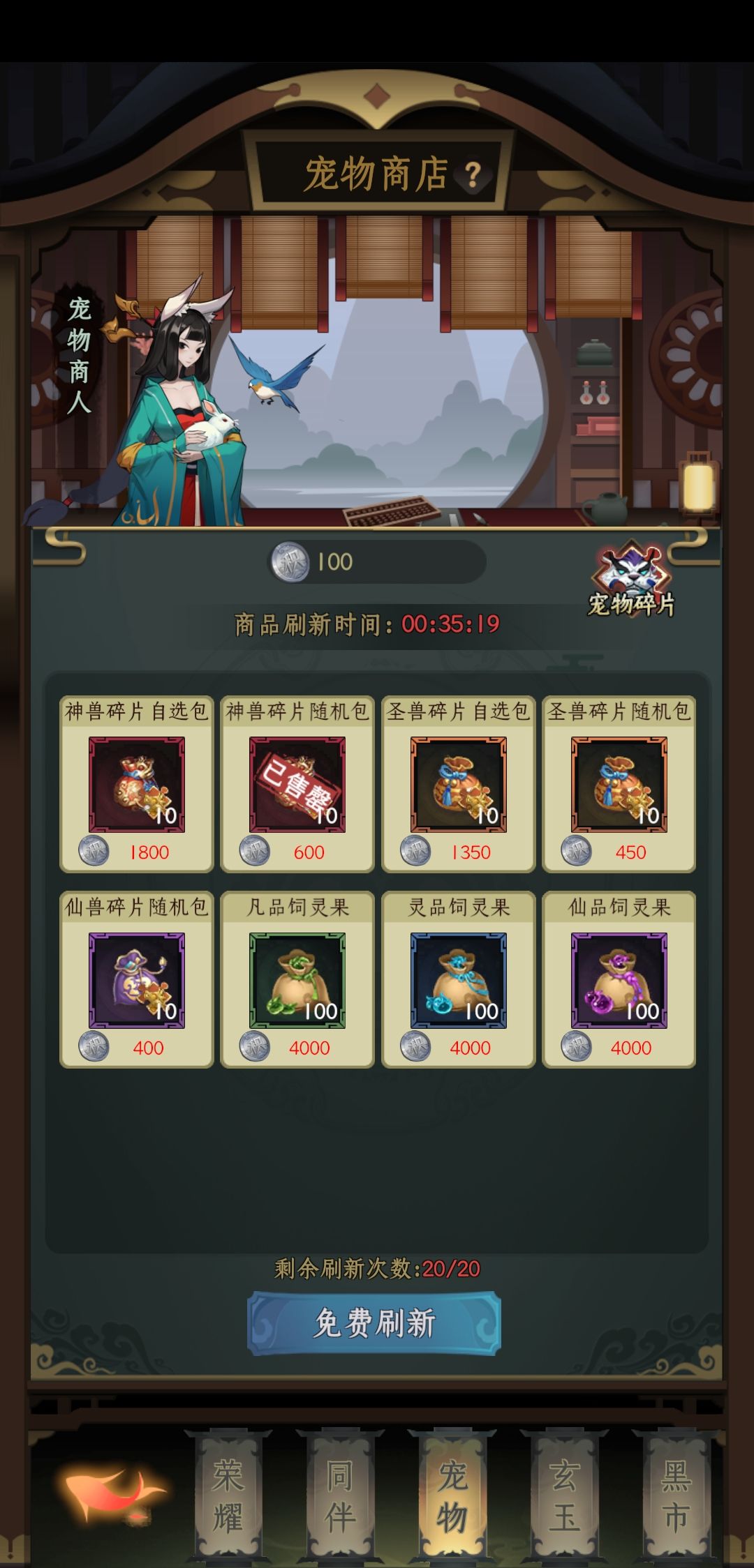 仙兽和圣兽碎片主要通过抽宠物获得,不建议使用商店的碎片包