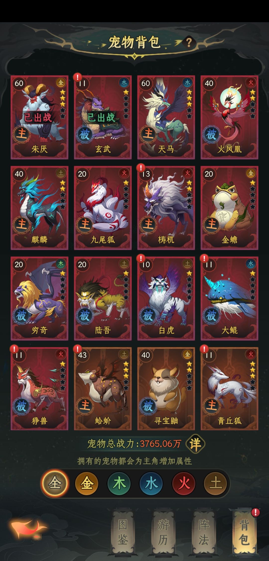 之前说的,1-10天种凡品饲灵果,现在派上用场,平均升所有的宠物基本都十几级,可以提供大量战力,宠物阵法随缘,有啥升啥,升星该升星升星,没有化形咒印就在宗门换