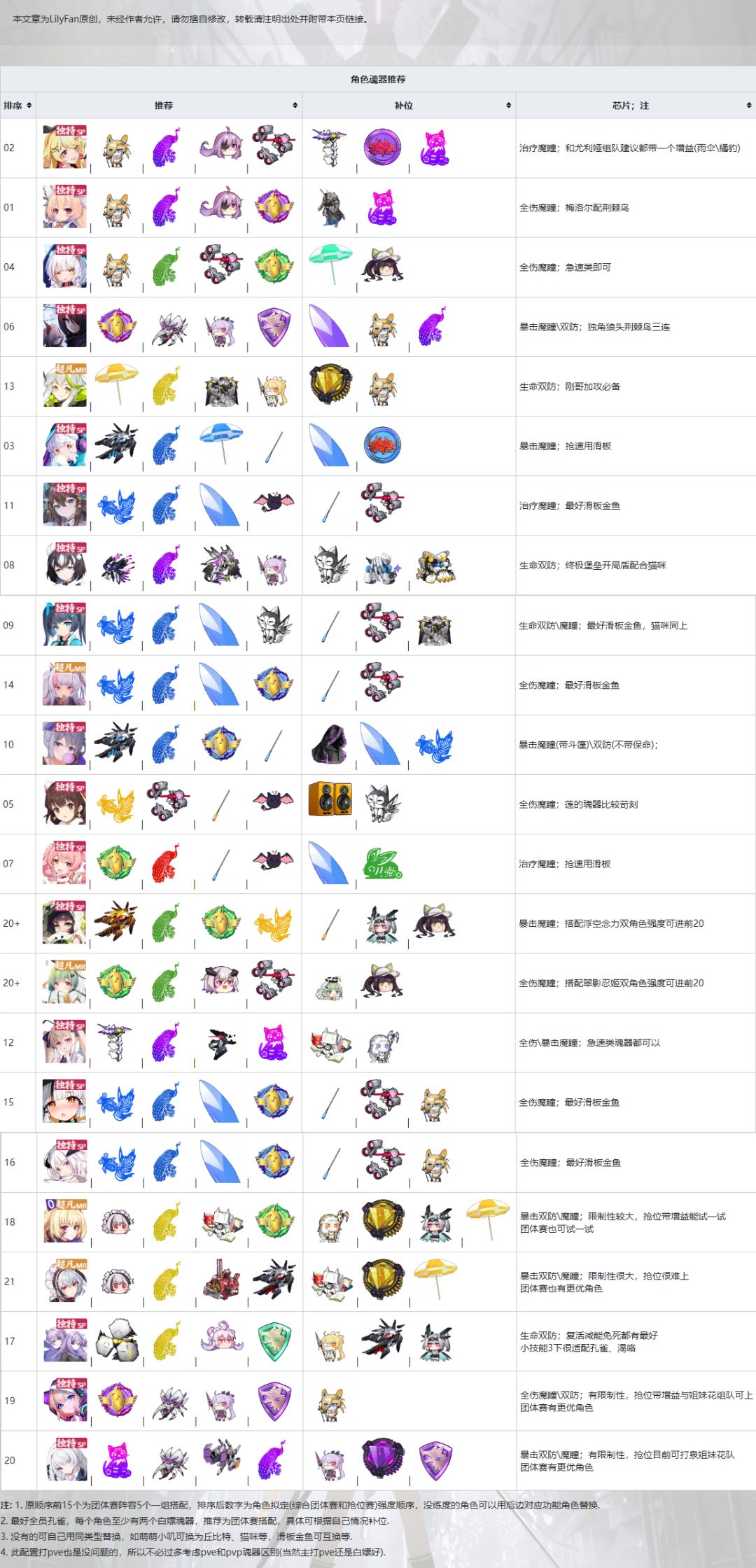 角色、魂器搭配
