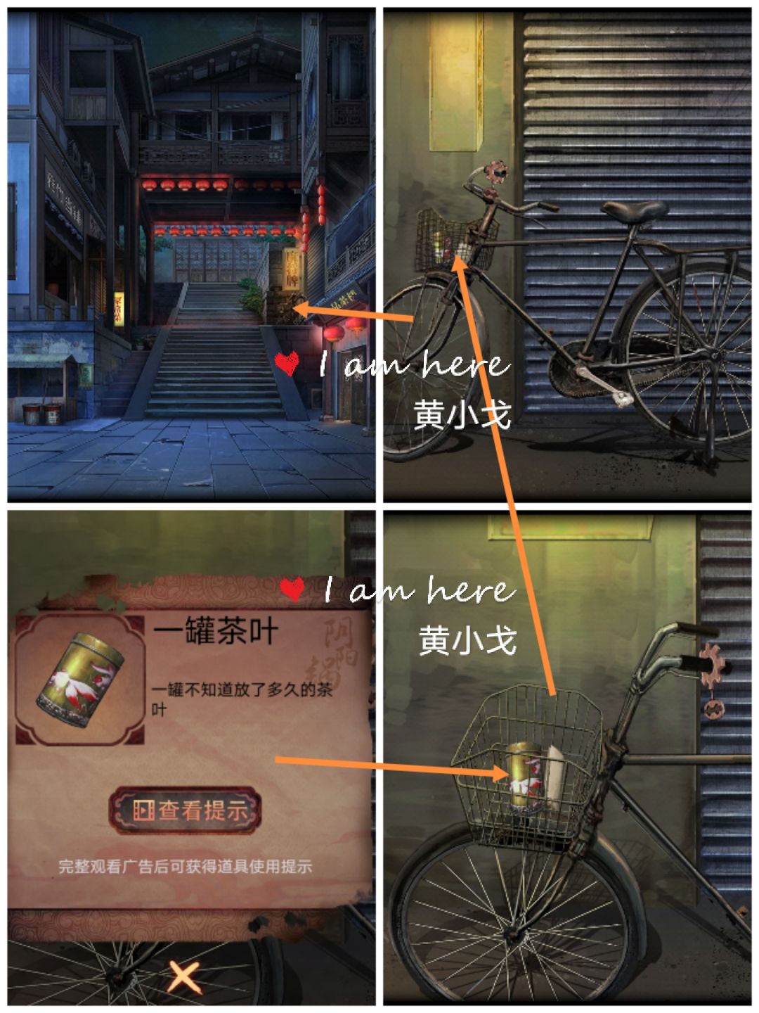 10.(巷子)点击自行车,在车篮里获得【一罐茶叶】