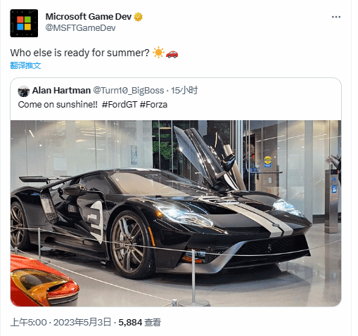 微软游戏开发者的官方推特账号转发了Turn 10 Studios及《极限竞速Forza》系列负责人Alan Hartman的推文,似乎暗示了《极限竞速》新作《极限竞速Motorsport》将会在夏天发售。