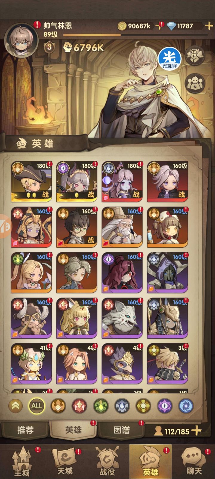 猛然发现这个游戏,买了个老区的自抽号,卡抽完花了11w钻搞了16只魅魔 如图