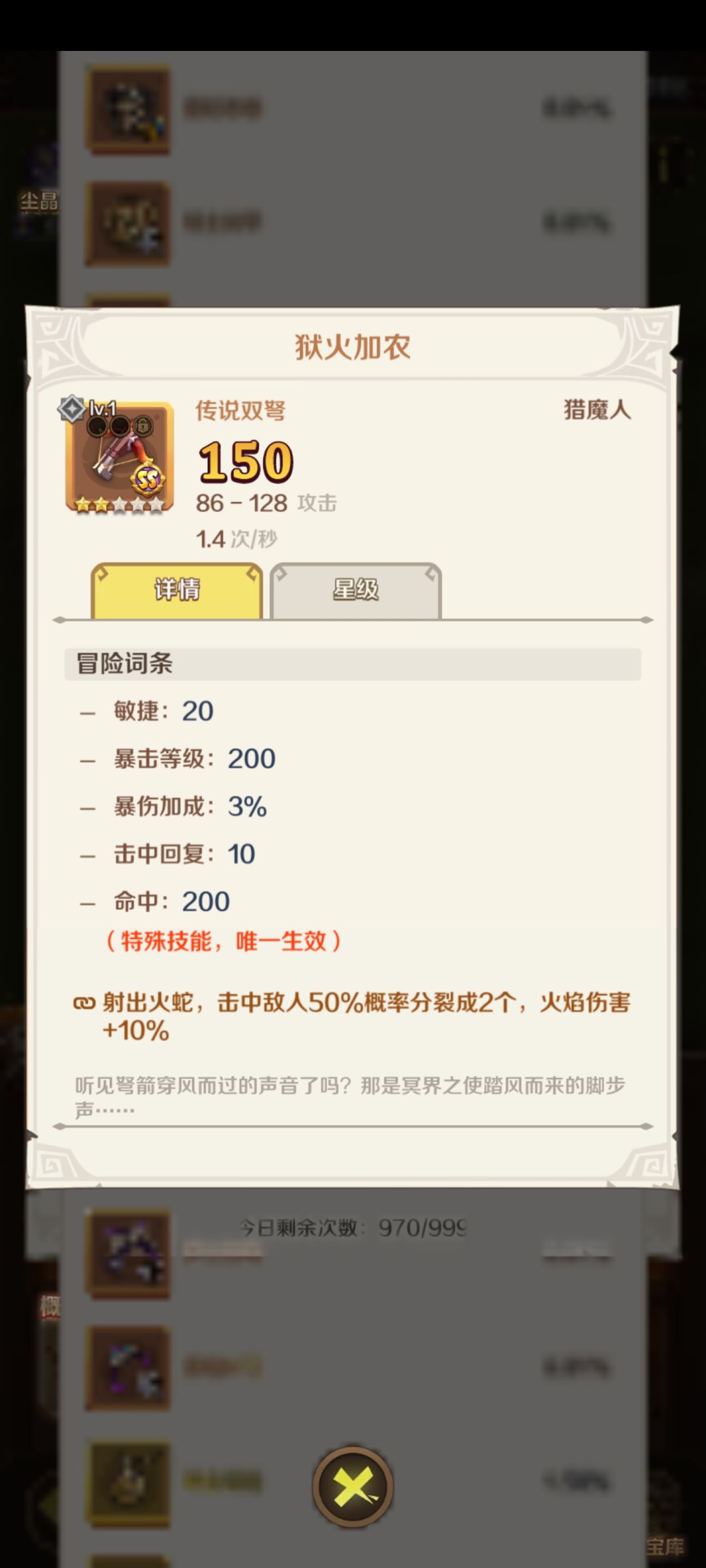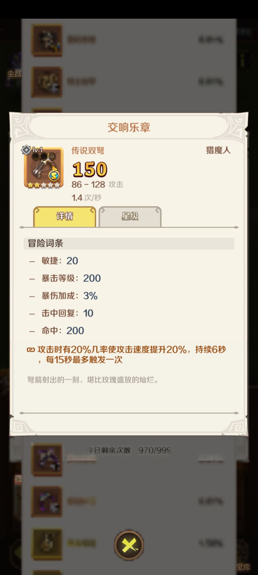 最后是升星,这个很好理解,消耗同名武器,可以升星,升星后数值词条都变强,所以这玩意提升很明显