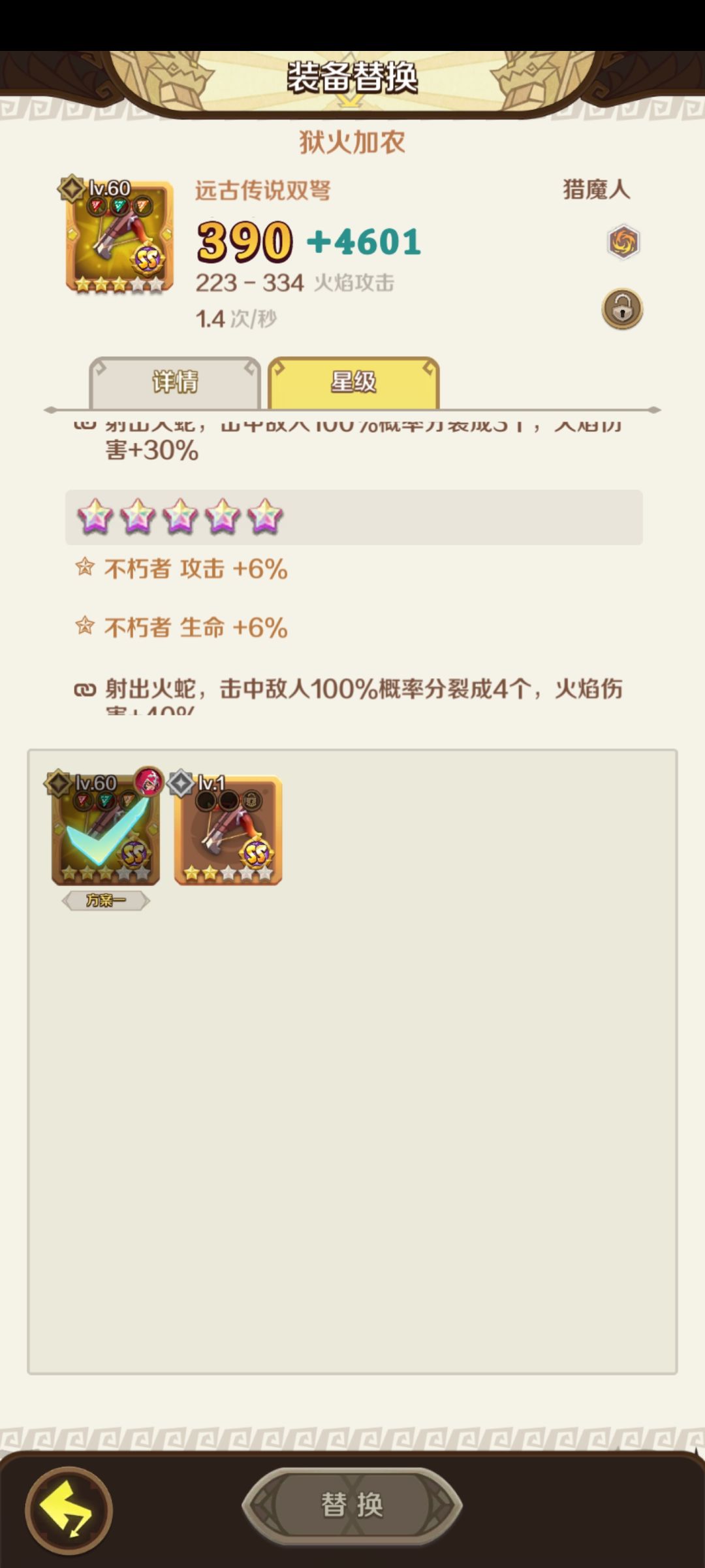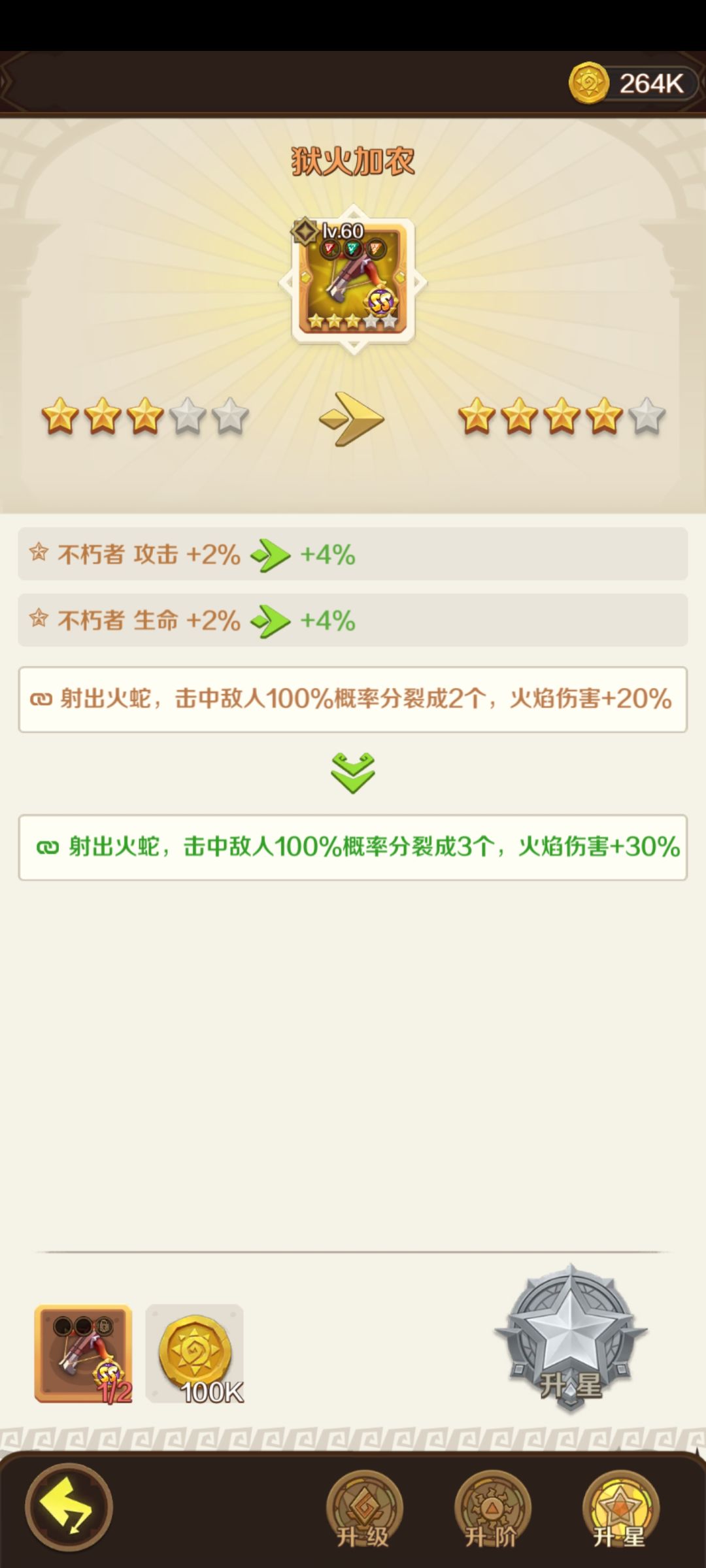 提升装备主要有三个方向,升级,升阶,升星。
