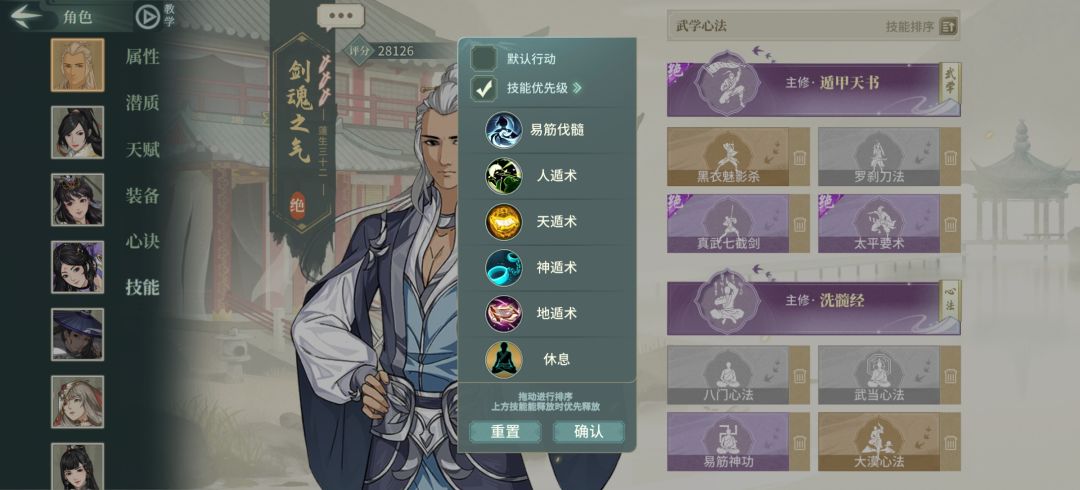 接下来是太极位,很多遁甲同行喜欢翠秀。毕竟天赋真的很强,再加上站的时间久,确实能带来不小的收益。但是我为了跟龟龟对抗,选了他们喜欢选的檀道济。至今还记得有个好友在论剑的时候碰到了,赛后怒不可遏的对我说,你TM一个遁甲要什么道济。总之呢,遁甲选道济的不多,但也是一种选择,也有奇效。拿出来扛刀,以抢代ban都是可以的。