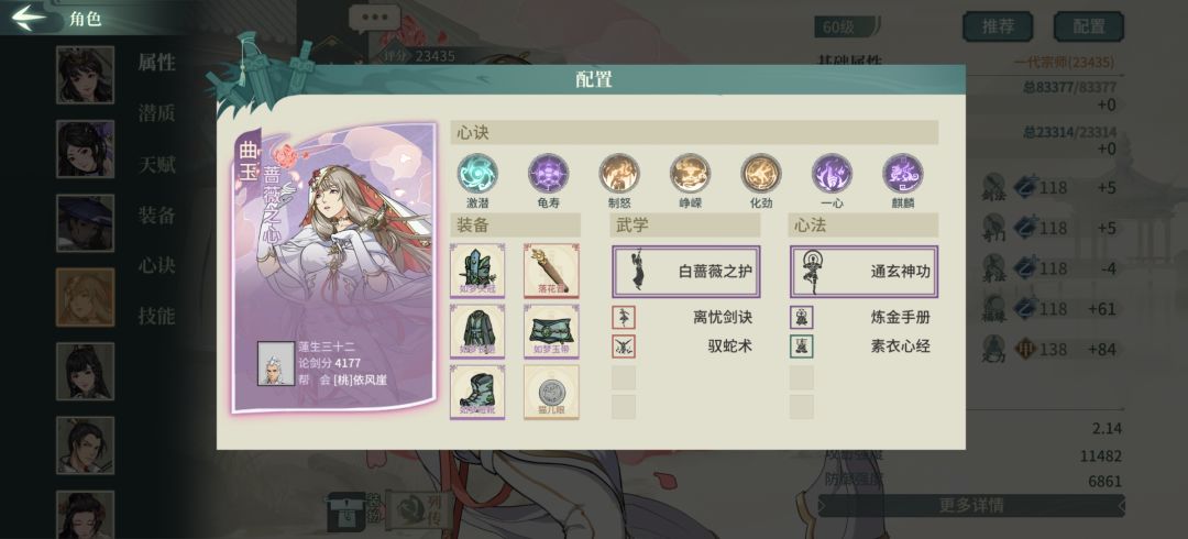 跟着是辅助位。琴师姐与通玄曲玉。完完全全是令狐冲,令狐兄的配置,特别感谢。