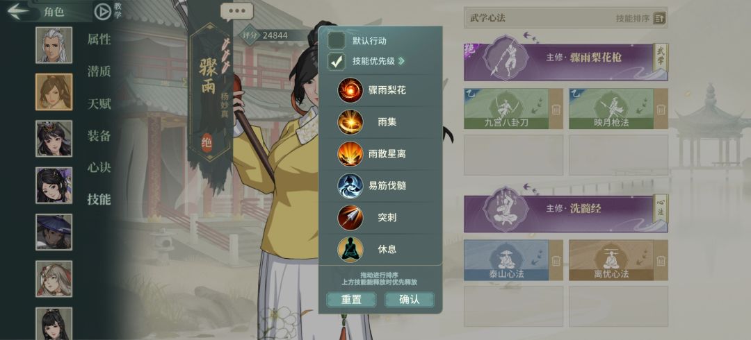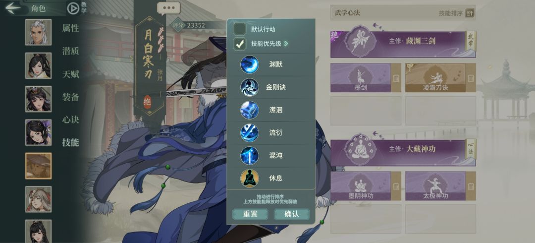 当然了,曲玉也算是热门侠客,虽然热的没有那么夸张。还有基于以抢代ban的思路,我们也来了一手琴师姐。给的替补资源。正常情况下是要给穷目的,这样琴师姐会很稳定的躲在一个小角落。但是给张月了,没办法,将就着用吧。洗练双悟性。