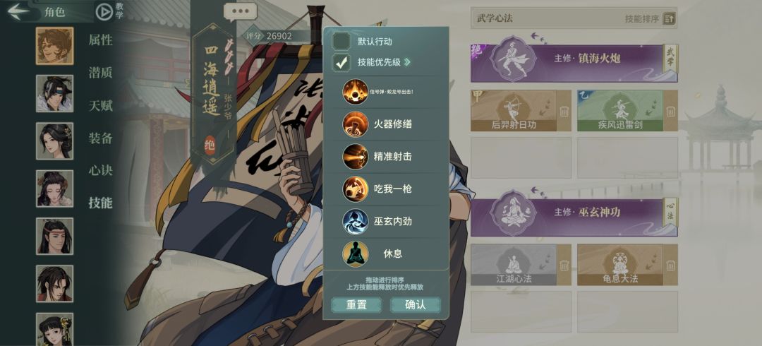 资源好理解,所有游戏都需要的东西。在汉家江湖里面主要是侠客、功法、套装、洗练、心决、参研。这个要么靠时间,要么靠氪金。这点其实应该给耗子点赞的,堪称当代手游界的清流,毕竟不逼氪。甚至0氪只要你有时间,都能登顶。嗯,典型人物是我们帮会的大长老,喜欢开黄包车的衡某人。所以想玩江湖又不想大氪的萌新可以放心入坑。