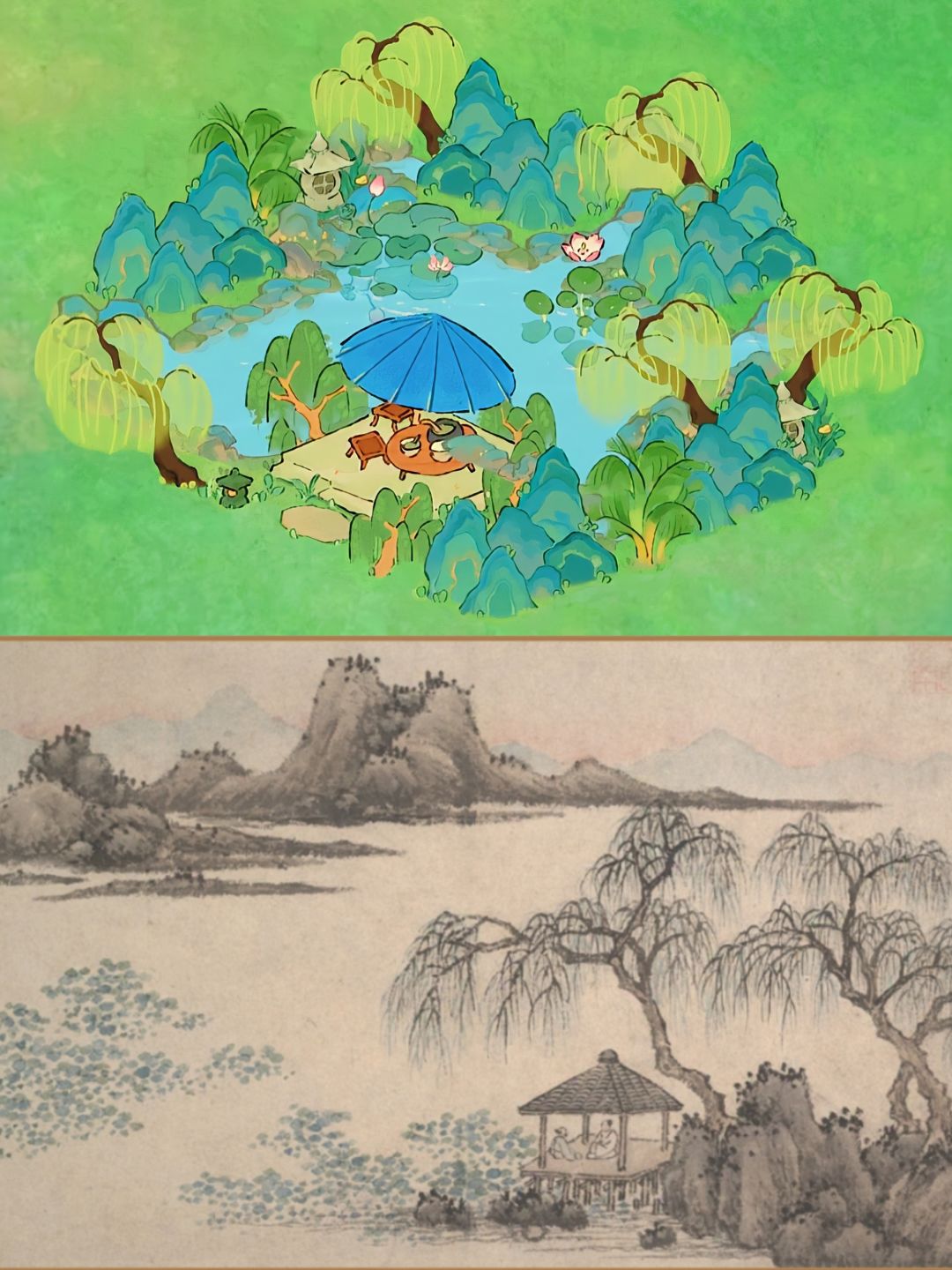 仿沈周古画《柳亭图》