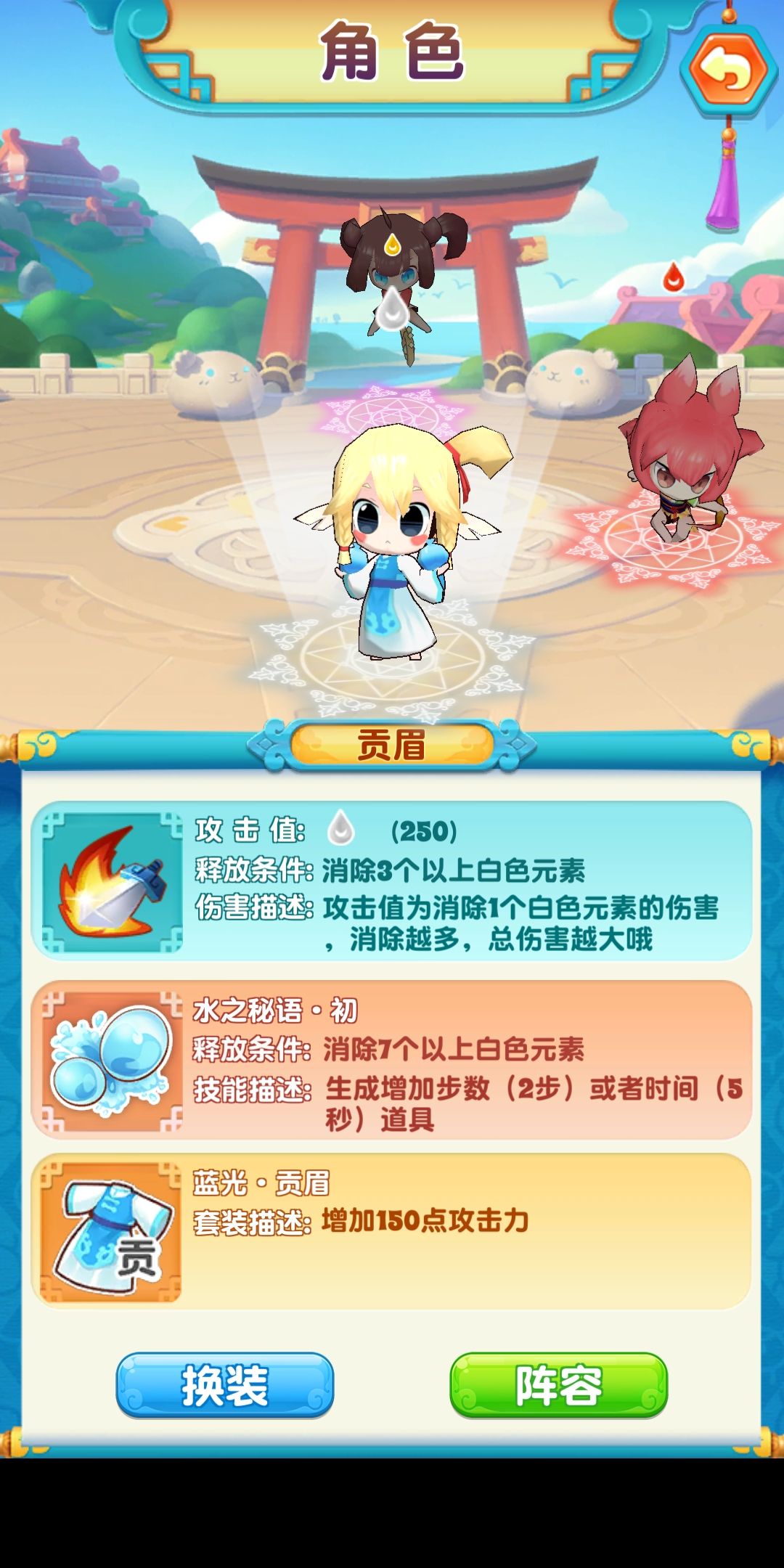 一直靠通过碎片去召唤,还好里面的免费召唤是72小时一刷新,时间还会走(不然就真的玩不下去了)。当时出贡眉的时候知道开心很长时间,关卡过起来容易不少 一些没满三星的关卡也蛮顺利通过了。不过又卡在了第99关,每次都是目标达到了,但是怪就是打不死……
