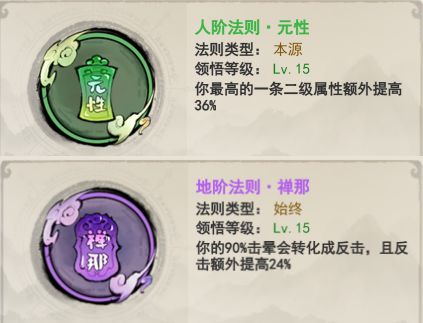 内天地:如果自身反击属性不够高,内天地可以选择元性和禅那,这里需要注意,如果自身的击晕属性在13%(具体需计算数值)以下,就选择元性,让属性增幅收益最大化;如果自身的击晕属性在13%以上,则反之。