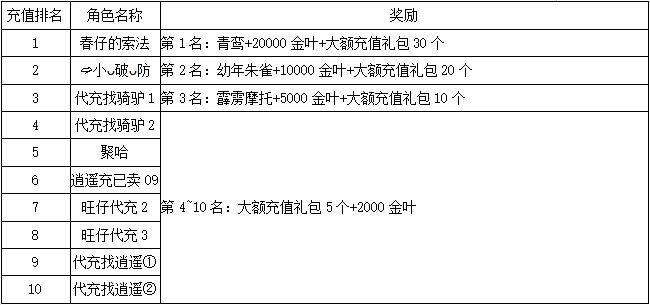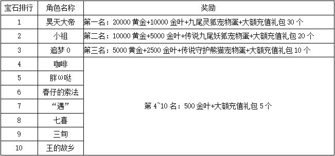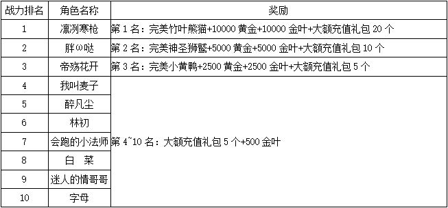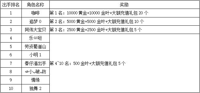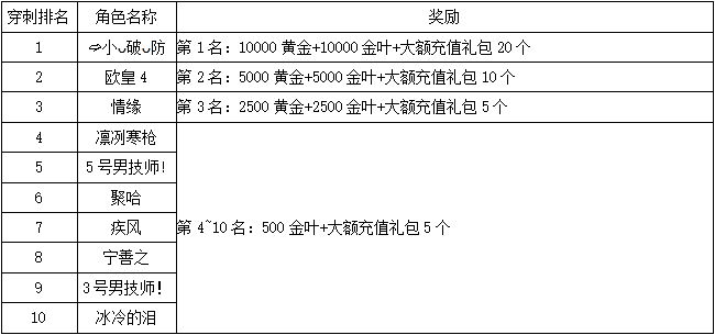 《世界OL》4月新区活动获奖名单
