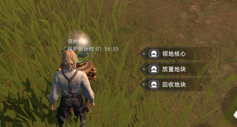 1. 玩家通关新手关卡后,将会获得领地核心。靠近领地核心,会弹出三个按钮。