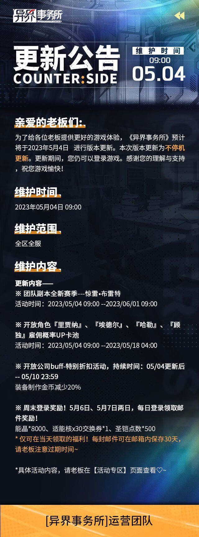 更新情报 | 里贾纳、埃德尔、哈勒、顾独雇佣概率UP复刻开放