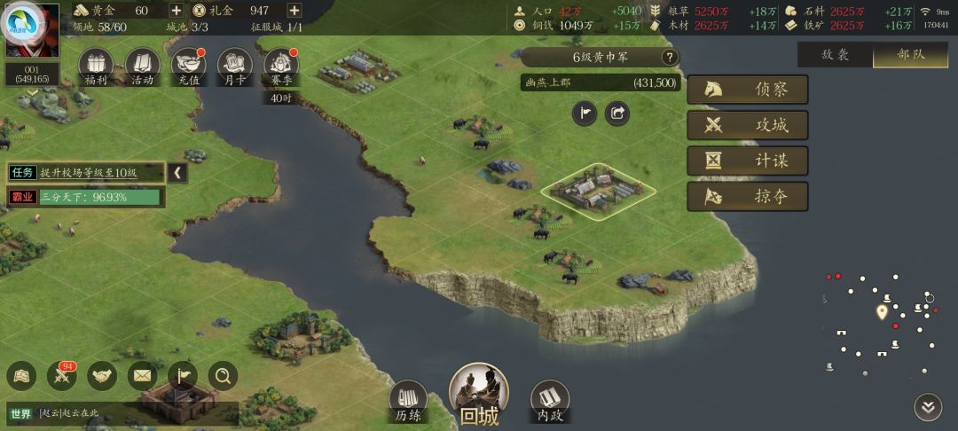 在上一期的文章里, 好不容易发动大众脸们群殴捉到了邢道荣,眼下他已经接受了招降,正勤勤恳恳在城池周边巡逻打运输队。趁着发育的间歇期,抽空来聊一聊这款手游的内政厅吧,毕竟这是SLG模式,经营的比重丝毫不逊于战斗本身。