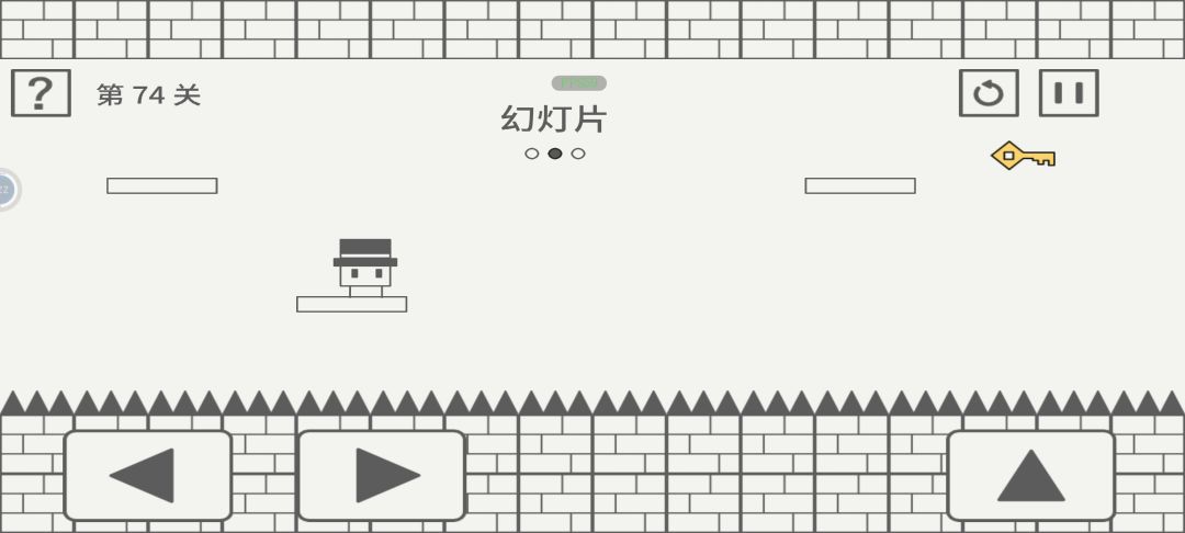 74:向左滑动可更换场景,滑动一次去吃钥匙,然后回到第一个台阶,再划第二次