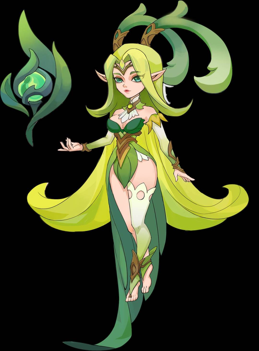 其次是她的治愈手段是怎样的。这里灵感来自于性格设定的延申,一个害羞的精灵为什么会拥有坚定的眼神,其中必然经历了我们暂时还不知道的成长,既然是成长,就很容易想到种子——生根、发芽、长大。想必爱尔琳妮会和她种子状的法器一起,成长为庇护一方的精灵。