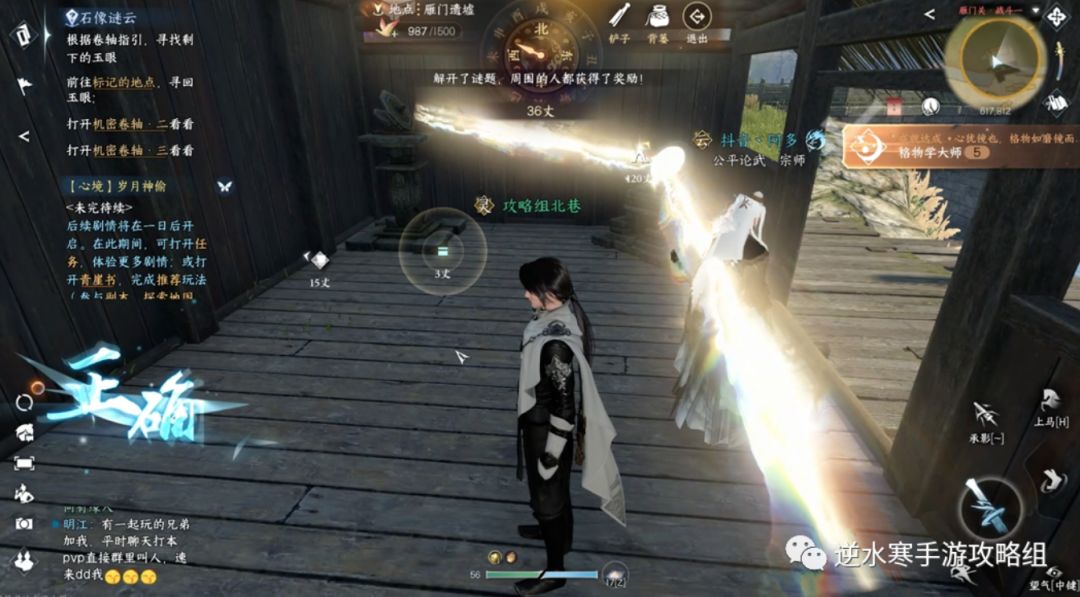 3.卷轴一的坐标在雁门关(616 811)触发镜光反射游戏。调成这样即可得到石像眼