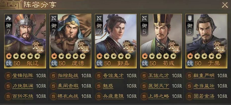 配法也比较固定,可能就是于禁的技能会有改动:
