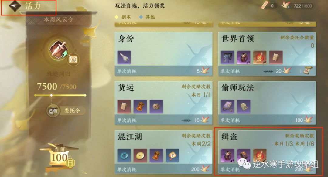 每次领取奖励扣除200活力,一天最多三次,一周上限为6次。