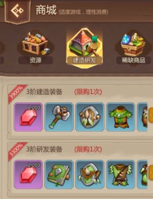 一开始大家基本都是跟着新手引导的主线任务进行提升,当主线任务完成之后,我们的游戏才是真正的开始,不过这初期提升的时候,会出现资源不足的情况,推荐大家首充是这2套蓝色的建筑研发装备,买后前期基本不会有资源消耗了,后面可以根据自己需求升阶,总花费与直接购买紫橙套是一样的