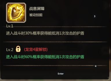 龙宠对决:初期是比龙多,直接上阵最高属性恐龙即可。后面会限制种类。之后主要看龙的战力与对决技能,比如牛龙进场60%概率带1层护盾,双脊龙进场加80%攻击,打1次少40%,异特龙南方巨兽龙的免死减伤,等各种互相克制的强力对决技能,获取的关键在于排兵布阵 对决技能在龙宠的升星页面查看,如果看到的是军团技能则需要点击切换。