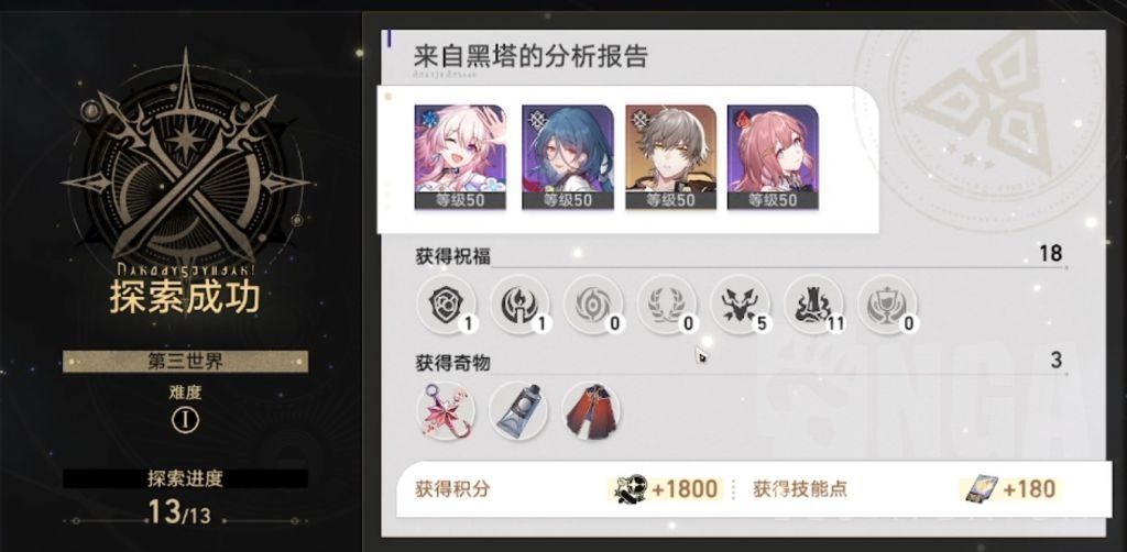 阵容:三月七、娜塔莎、毁灭主角、丹恒