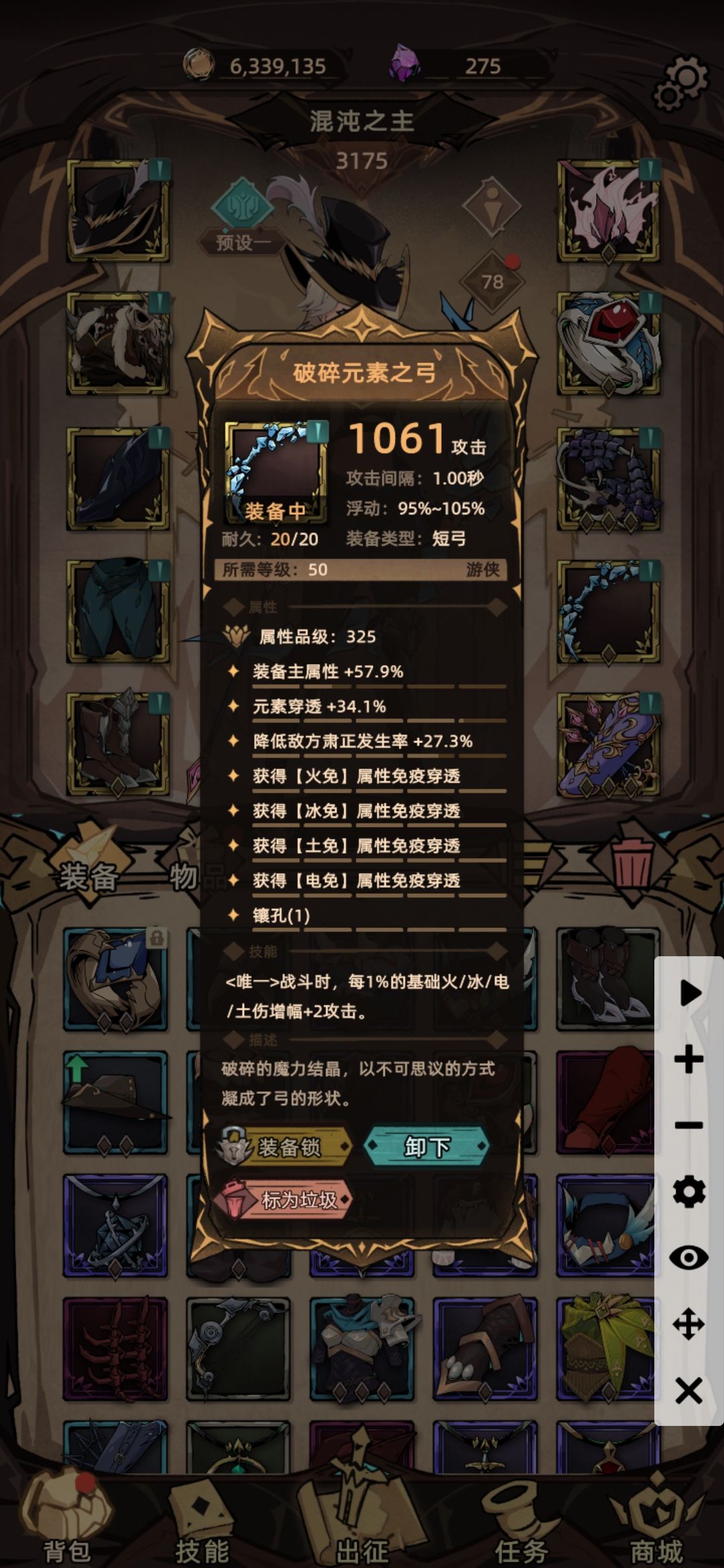 混沌之主,火系熔岩箭矢。有bug吧?熔岩箭矢。土系还能打一万多伤害,火系4点5点