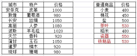 以交易特产为主。敦煌和长安作为丝绸之路的枢纽,可谓四通八达,因此我们在进行交易时一定要充分利用这一特点。